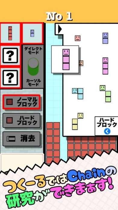 ブロックを自由に配置し、連鎖やスピンの動作を確認することができます。