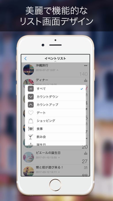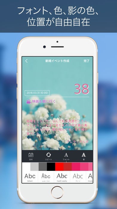 大切な予定やイベントまでのカウントダウンや、出会ってから何日というカウントアップもできます。365日、イベントなどを見逃すことも忘れることもなく、当日を迎えることができます。