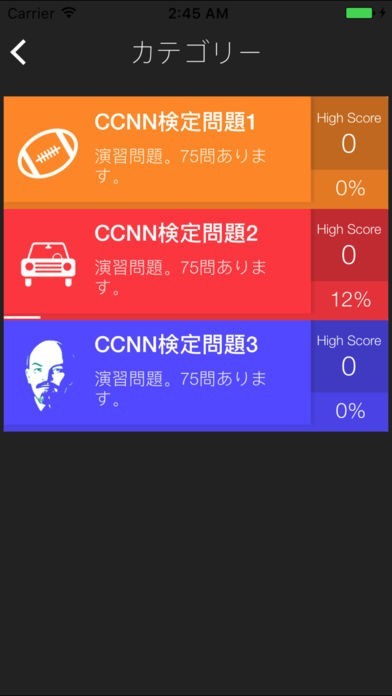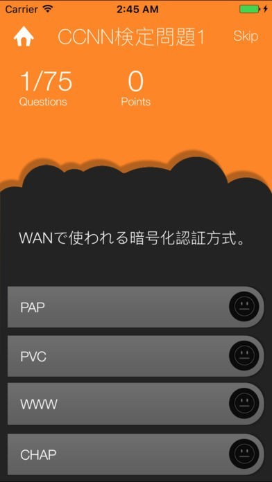 App Storeより引用CCNA検定対策のクイズアプリです。
