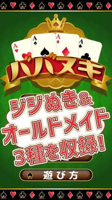 ババ抜きはもちろん、ジジ抜きやババ抜きの元となったオールドメイドも遊ぶことができます。ババ抜きに飽きたら、3種類のゲームの中から好きなゲームを選んで遊びましょう。
