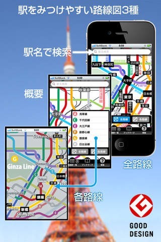 いくつもの路線が乗り入れていて迷路のように入り組んでいる東京の地下鉄をスムーズに利用することができるように、乗り換え案内や駅名検索機能などを搭載しているアプリになります。