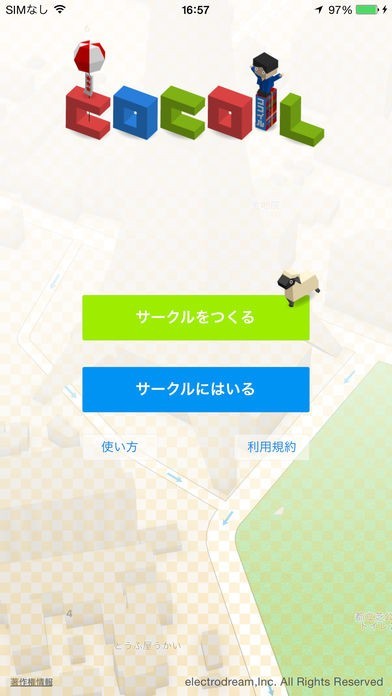 「ココイル」は、旅行やイベントの際に顔見知り同士で居場所を共有して待ち合わせなどをスムーズにできるようにするアプリです。情報の共有ができるのは登録された人だけなので、不用意に無関係の人に居場所を知られてしまうことがありません。参加者の居場所は地図上でアバターとして表示され、各自別々に名前やアイコンを選べます。またリアルタイムで更新される一言メッセージを設定できるので、居場所だけでなく自分の状況や伝言を知らせることもできます。他にも、地図上に集合場所などの「目的地」として目印を置いたり、参加者のメッセージが更新される度に通知で知らせる機能などがあります。