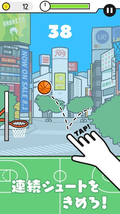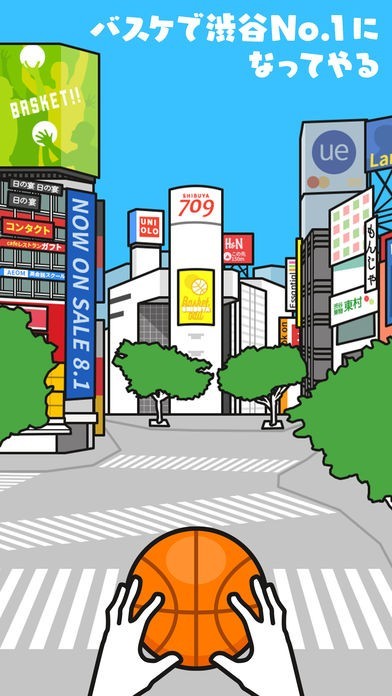東京の一大都市である、渋谷のスクランブル交差点で、バスケットボールを一人で行うことができます。通行人は無視して、道行く人々の間をぬうイメージでボールを入れることができます。