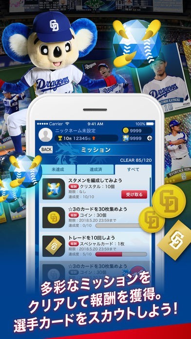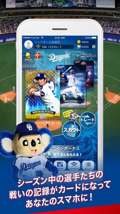 中日ドラゴンズの選手がカードとして登場!ミッションの達成で様々な報酬を獲得出来るゲームアプリ