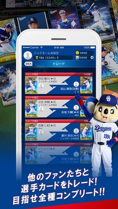 このアプリの便利な機能はトレードができるという点です。貴重な星4の選手を手に入れたけど別の星4の選手が欲しかったという場合があると思います。そういった時にはトレードで交換相手を募集することができるようになっています。どれだけレアな選手を集めたかランキングもあり、ドラゴンズファン度を競い合えるアプリになっています。