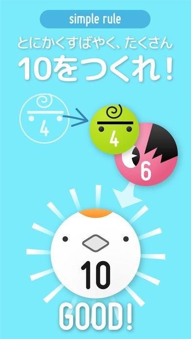 SUM! - かわいい数字で算数遊びとは、画面に登場するキャラをぶつけて行き、数字の10を形成して行く、愉快な構成のパズルゲームアプリです。子供が喜ぶ内容である為、子育て真っ最中のお母さん逹に有効的です。親子の絆を上手に築きながら、同時に数量の計算能力までバランス良くアップ出来ます。数多くの個性を持った数字のキャラクターを操って行き、10の数字を集中しながら作成して行けます。キャラを2度押すと幾つかに分かれる仕組みです。ゲームへと全神経を注ぎながら、分裂するからくりまで簡単に覚えられます。気になるキャラクターの詳細データをリストで隈なくチェック出来ます。指先で優しく触れると、キャラのリアクションを自由に拝見出来ます。
