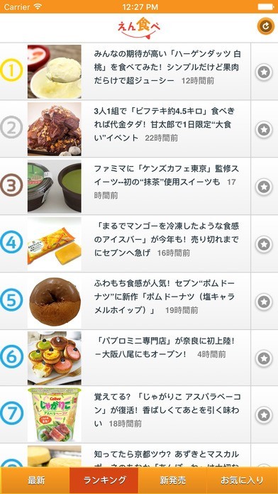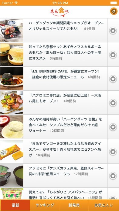 毎日、グルメの新発売・キャンペーンの情報を通知でお知らせ(ON/OFF可能)するほか、人気記事ランキング、お気に入り(ブックマーク)機能がご利用になれます。