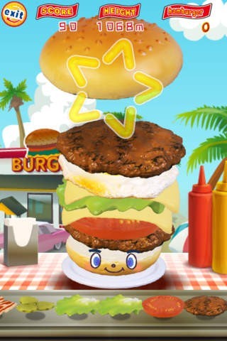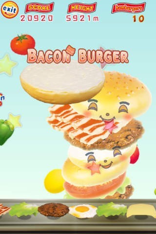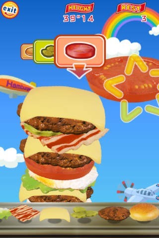 バンズと具材をどんどん積んで天空のバーガーランドに届くモンスターハンバーガーを作ろう