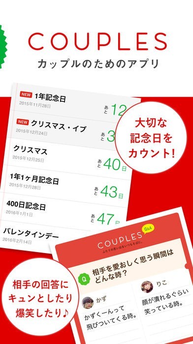 カップル専用アプリCouples (カップルズ)で記念日共有のスクリーンショット