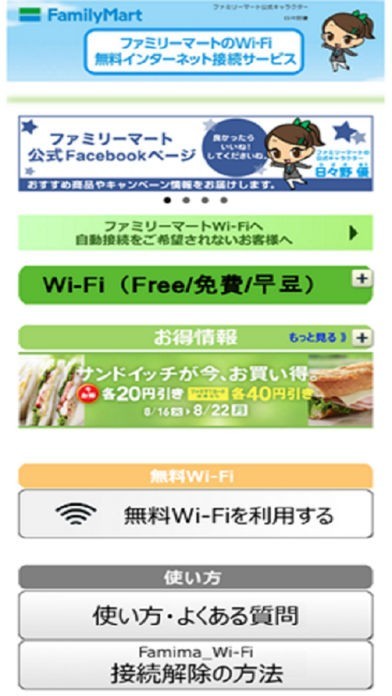 ファミリーマートWi-Fi簡単ログインアプリのスクリーンショット