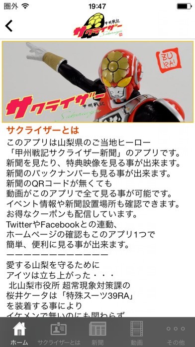 山梨県で有名なご当地ヒーローの甲州戦記サクライザー新聞のアプリ!