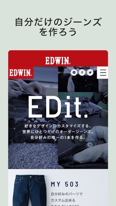 App Storeより引用ジーンズ、デニム、ジーパンのEDWIN(エドウイン)公式アプリが誕生!