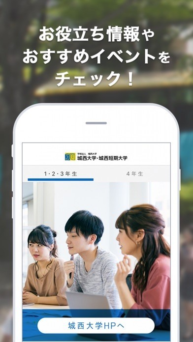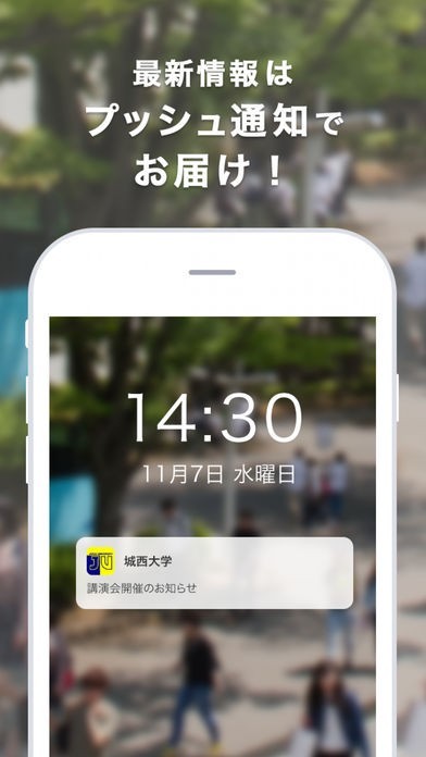 大学情報やキャリア関連情報をプッシュ通知でお知らせします。アプリの初回起動時にプッシュ通知を「ON」に設定するようお願いします。なお、オン・オフの設定は後から変更もできます。