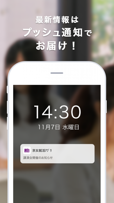 イベント情報の掲載や最新情報のプッシュ通知機能で就活がスムーズになります。