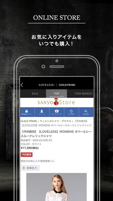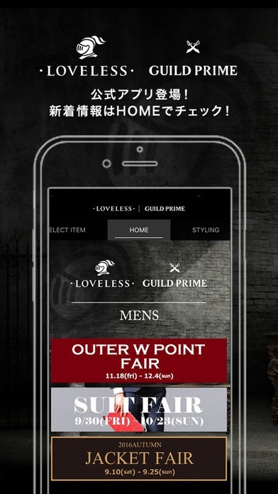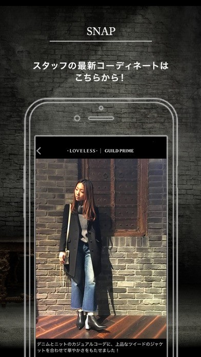 「LOVELESS/GUILD PRIME 公式アプリ」は、LOVELESSとGUILDPRIMEの二つのブランドの最新情報をスマートフォンでチェックすることができるアプリになります。スタッフおすすめの最新コーディネートを確認したり、アプリを使ってオンラインショップから商品を購入することが可能となっています。