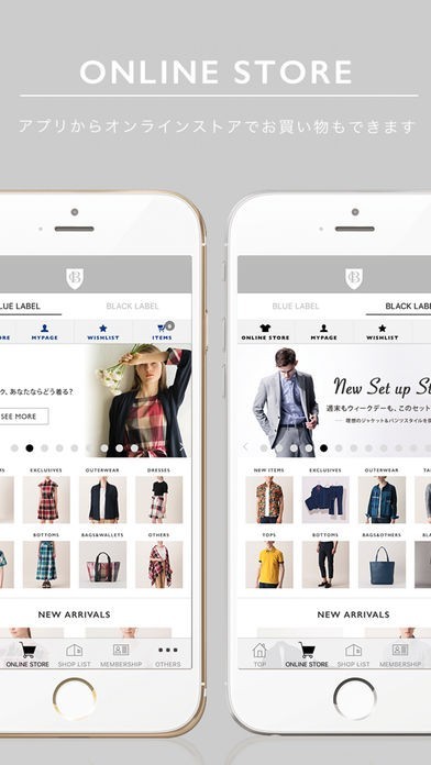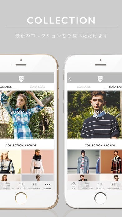 ブラックとブルーの二つのクレストブリッジのレーベルで役立つコンテンツが満載のアプリとなっていて、最新のコーディネートや新商品情報などをチェックすることができます。