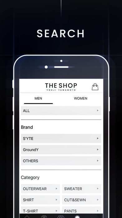 S'YTE / GroundY / Y's それぞれのブランドから、商品カテゴリーごとに商品を検索できます。