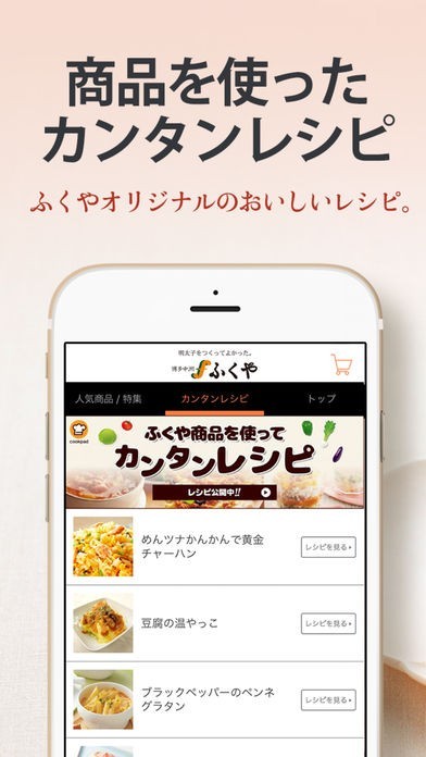 クックパッドに公開している、ふくやオリジナルレシピも見れる!