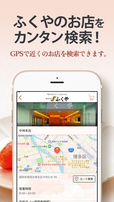 ふくやのお店を探すのもカンタン!GPSでお近くのお店を検索できます。