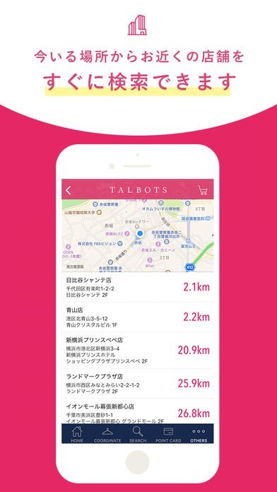 今いる場所の近くにある"TALBOTS"の店舗をスピーディーに検索することができます。マップからの店舗の位置確認と現在地から店舗までの距離も分かりやすく表示してくれます。