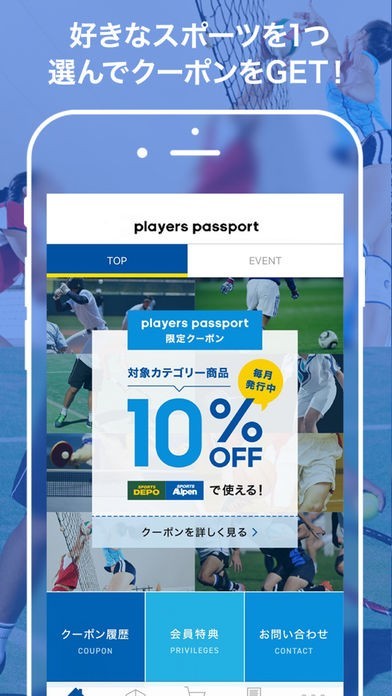 スポーツ用品店「アルペングループ」の公式アプリで、スポーツデポやアルペンなどグループ店舗の店舗検索や最新情報の確認ができます。 気になる商品があったらそのままオンラインストアで購入することも可能です。 野球やサッカー、テニスなどのスポーツの中から好きなスポーツを一つ選ぶと、そのスポーツに関連する商品を10%オフで購入できる特典があります。