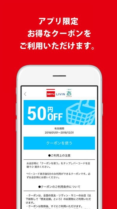 スーパーマーケットの西友をもっとお得に利用することができるコンテンツが満載の公式アプリとなっていて、アプリユーザー限定で使えるお得なクーポンなどを配信しています。