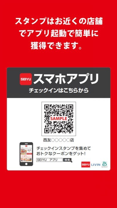 来店チェックインスタンプ機能が搭載されているので、西友の店舗を訪れるたびにスタンプを押してもらうことが可能となっていて、貯めたスタンプを各種特典と交換することができます。