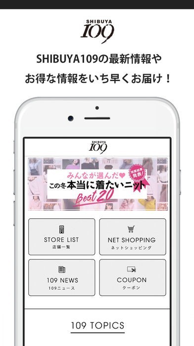 渋谷109の最新情報をスマートフォンでチェックすることができる公式アプリとなっていて、ここでしか見ることができない限定コンテンツなども閲覧することができるようになっています。