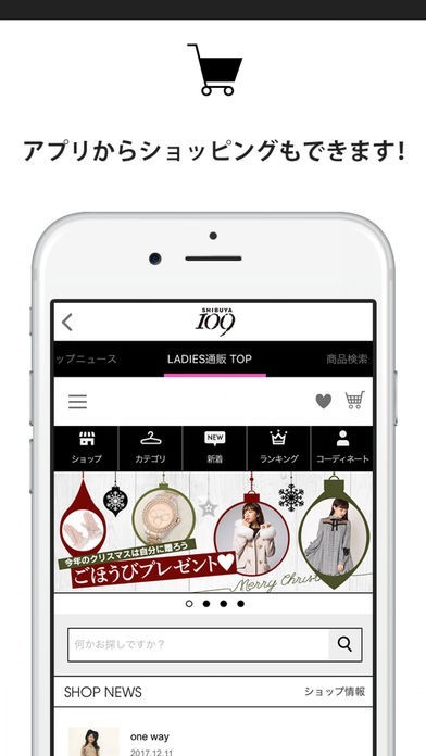渋谷の109で使えるクーポンが用意されている点に加え、アプリでも109の取扱商品が買えるのがうれしい。