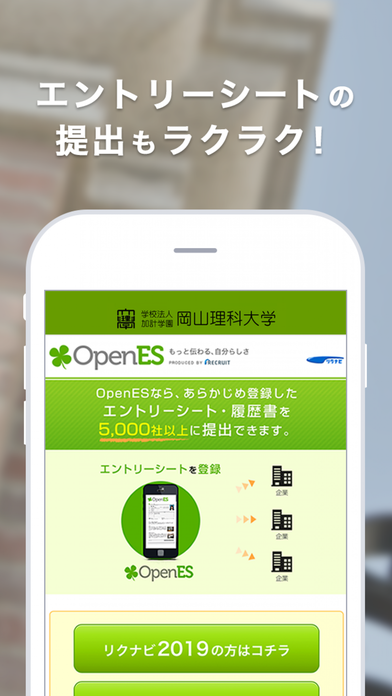 リクナビと連携して、あらかじめ登録しておいたエントリーシート(ES)や履歴書を5000社以上の企業に提出できるので、少ない手間で効率よく就活を進めることができます。