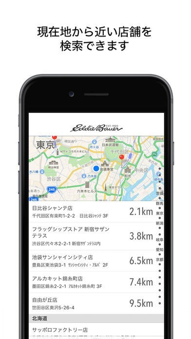 さらに、気になった商品をその場で購入できたり、お近くのショップを簡単に探せるショップ検索機能など、Eddie Bauerファンには必見のアプリです。