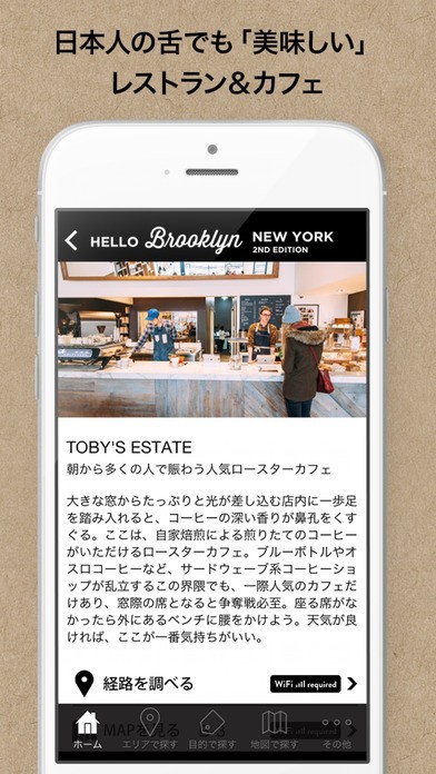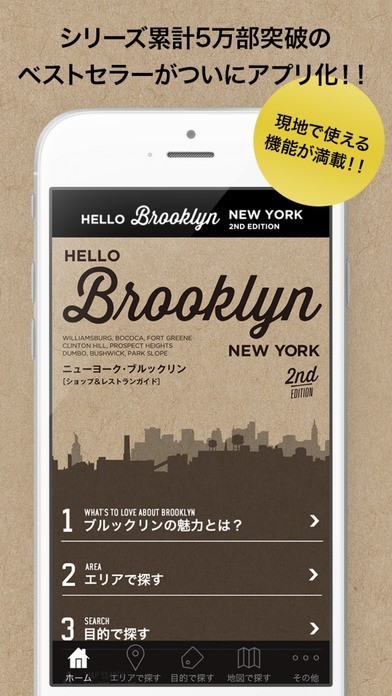 雑誌編集者が案内するブルックリンの歩き方ガイド 『HELLO BROOKLYN』(2nd Edition)のアプリ版が誕生。 ガイドブックを持ち歩かずに、便利に使えるアプリならではの機能が満載。