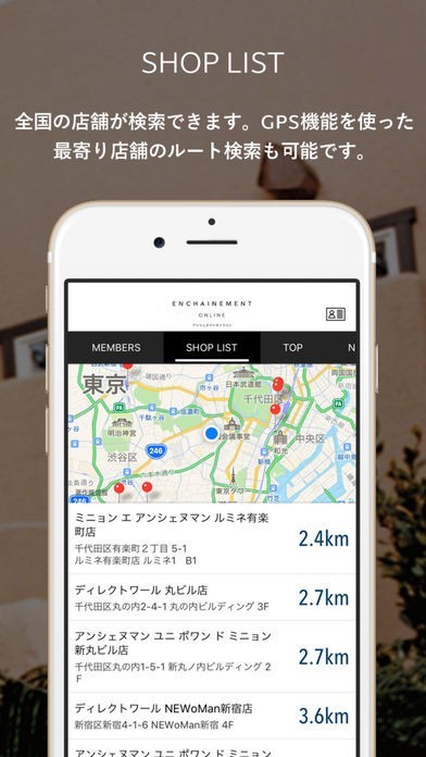 全国の店舗が検索できます。GPS機能を使った最寄り店舗のルート検索も可能です。