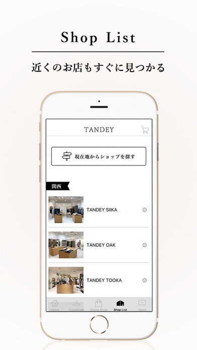 ショップリストから全国各地にある人気の店舗やGPSを使って最寄りの店舗を素早く検索することができます。店舗情報や所在地などの詳細情報もチェックすることが可能となっています。