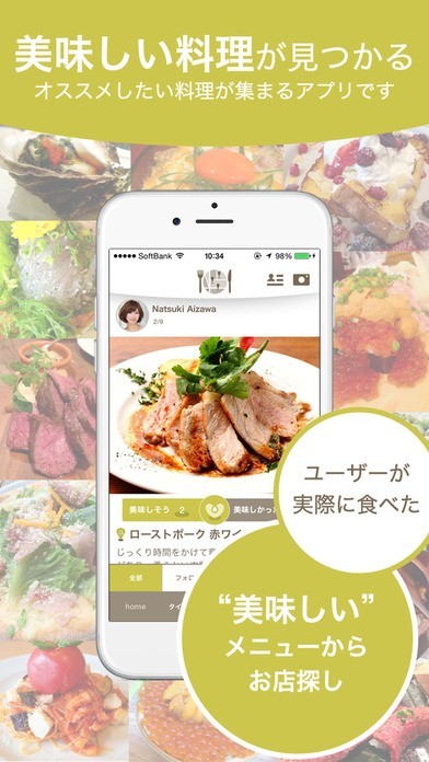 レコメンドから気になるお店や料理が探せる!気にいた料理やお店をみんなに紹介できる!まだ知らないお店に出会えるアプリ
