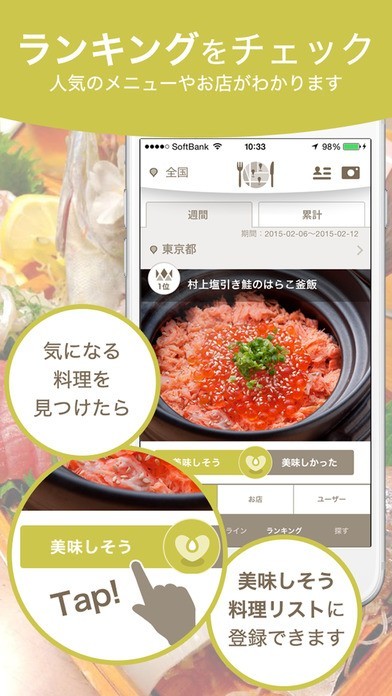 ランキングをチェック!食べたい料理を検索!気になる料理は美味しそうボタンで料理リストに登録!
