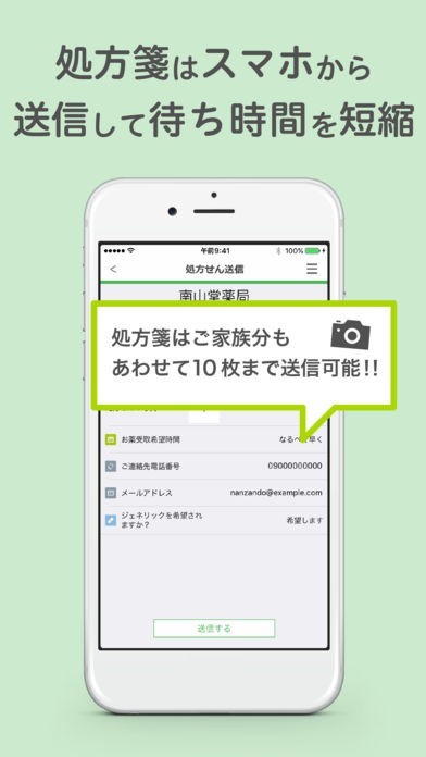 App Storeより引用南山堂アプリは、南山堂薬局全てでご利用いただける処方せんの予約アプリです。