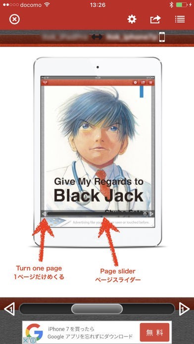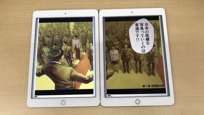 スマートフォンなのに実際に本を読むように2ペー分、一度に表示できます。