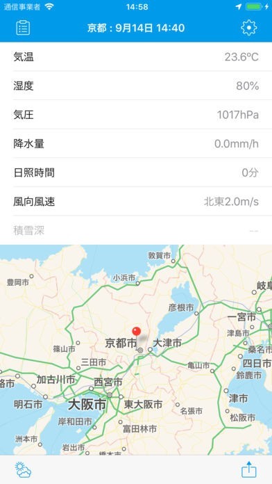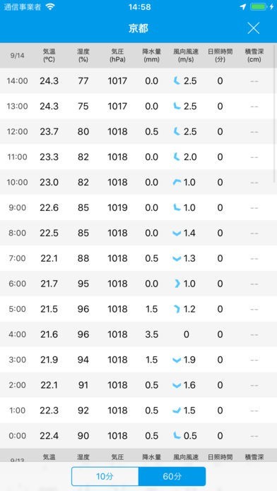 2日前までの観測履歴が見れるので、天気を振り返ることができて便利です。