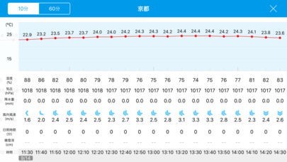 シンプルで誰でも使いやすいアプリです。都市や時間ごとに一覧表になっているので、必要な情報がすぐに見つかります。気温の変化も棒グラフで表示されるので、時間ごとの変化がよくわかります。
