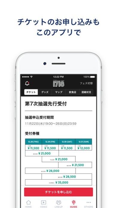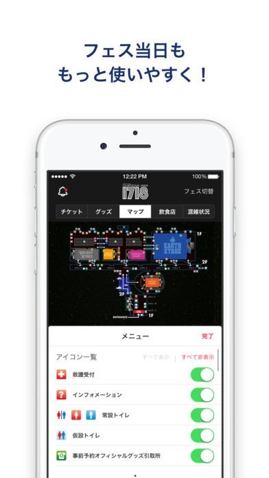 チケット先行予約や会場MAP、フェス後の動画などフェスを数倍楽しめる。
