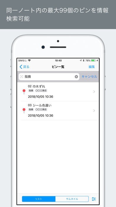 整理のため、ファイルに対しピンをドロップし、メモを残すのがおすすめです。ピンには各種のタグや、コメント、写真・音声・動画ファイルをメモのように付加することが可能です。