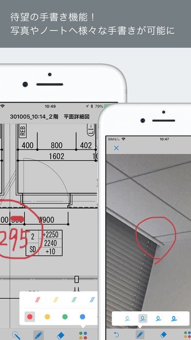 建築現場シーンで使われてきた「野帳」の現代版、というのがこのアプリのコンセプトです。図面上への撮影箇所表示や報告書類の自動作成といったデジタルならではの機能がついたこのアプリは建築関係のお仕事をされている方におすすめです。