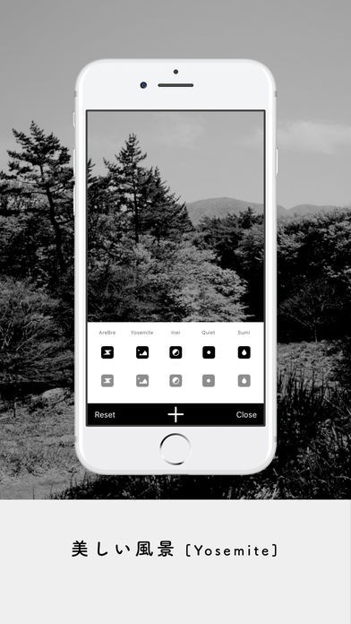 ・AreBure、Yosemiteといった、往年の写真家を彷彿とさせるフィルターも