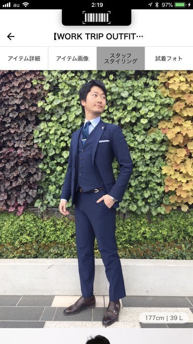 united arrows green label relaxingのアイテムのバーコードを内蔵されているカメラでスキャンすると素早くアイテム情報やコーディネート画像、スタッフによる着画像などが閲覧できます。