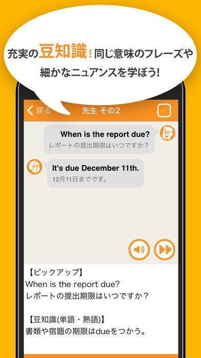 音声再生機能搭載!ネイティブによる発音で各シーンを学習!