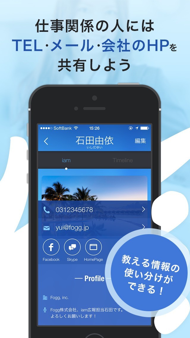 仕事上での付き合いでは情報を減らして連絡先を交換できる