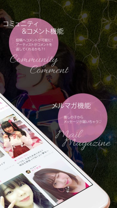 アーティストを応援したり画像を見ることができて、コミュニティやコメント機能もあります。