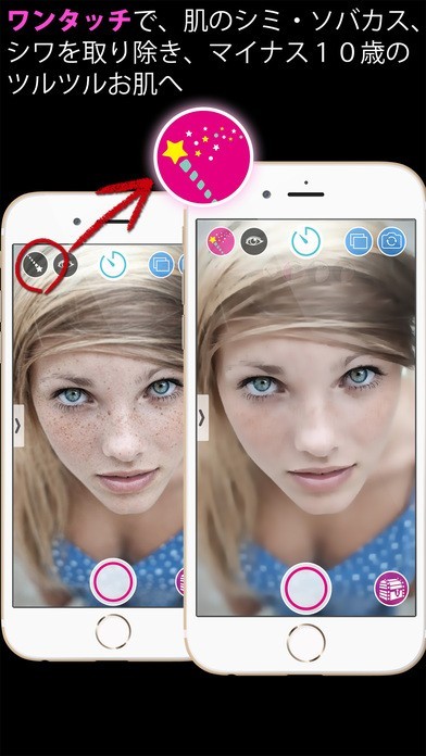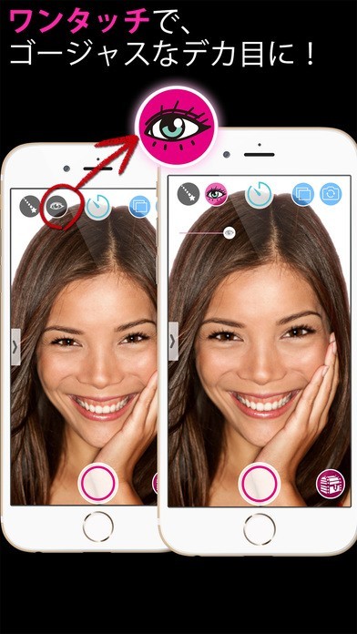 美肌加工もデカ目加工もタップするだけ!自撮りの後の面倒な加工を省きます