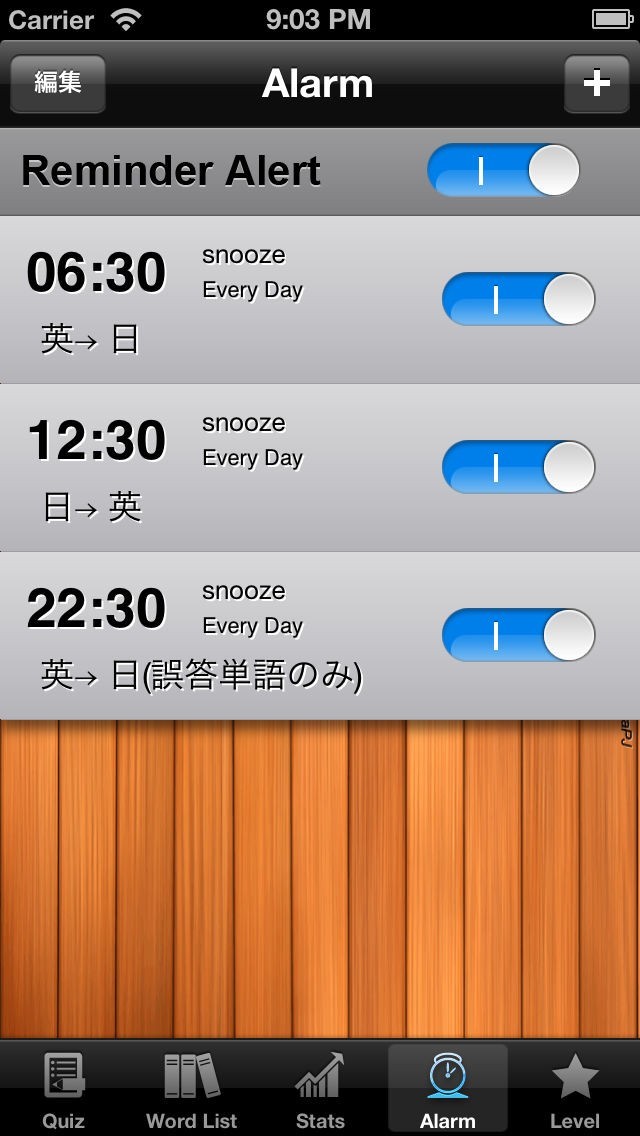 勉強時間はアラームにお任せ。毎日の英単語学習が簡単に続けられる!